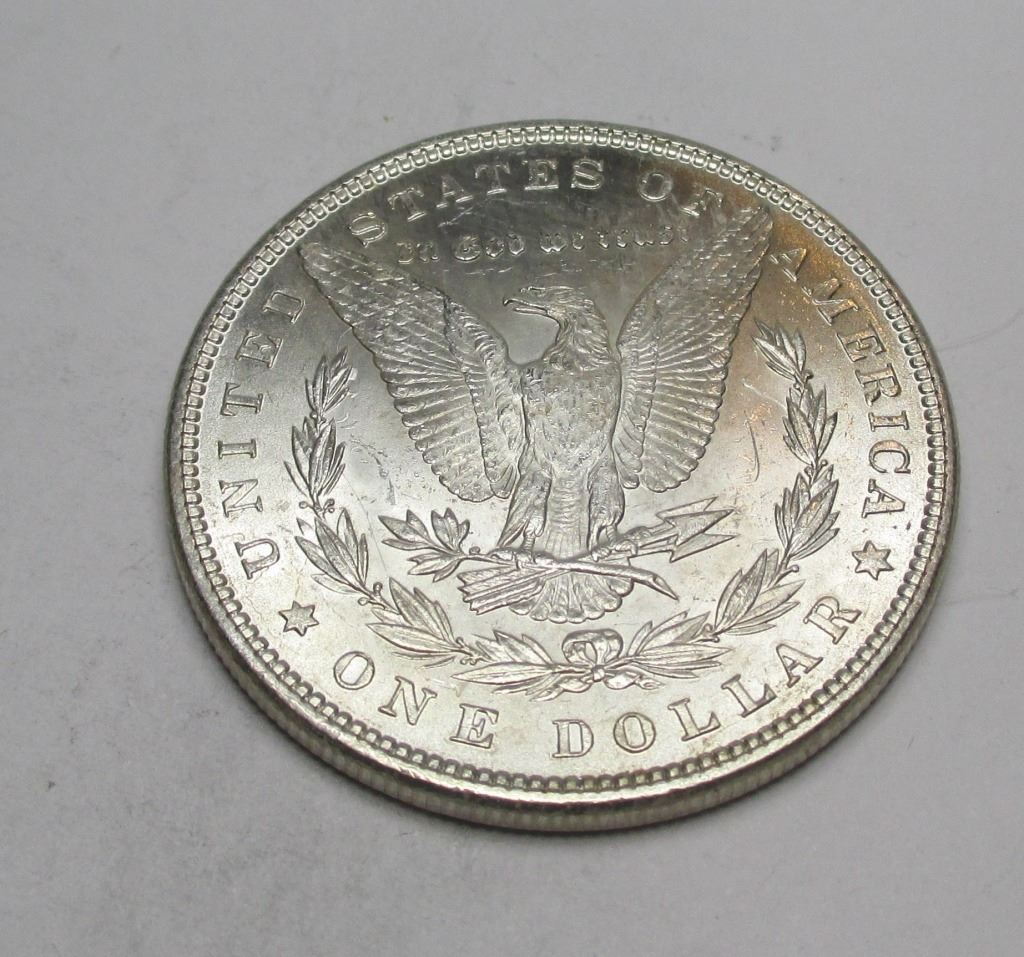 Item is as shown in image. Bidder will receive a BU grade Morgan Silver Dollar as shown in image. Exact date and grade.