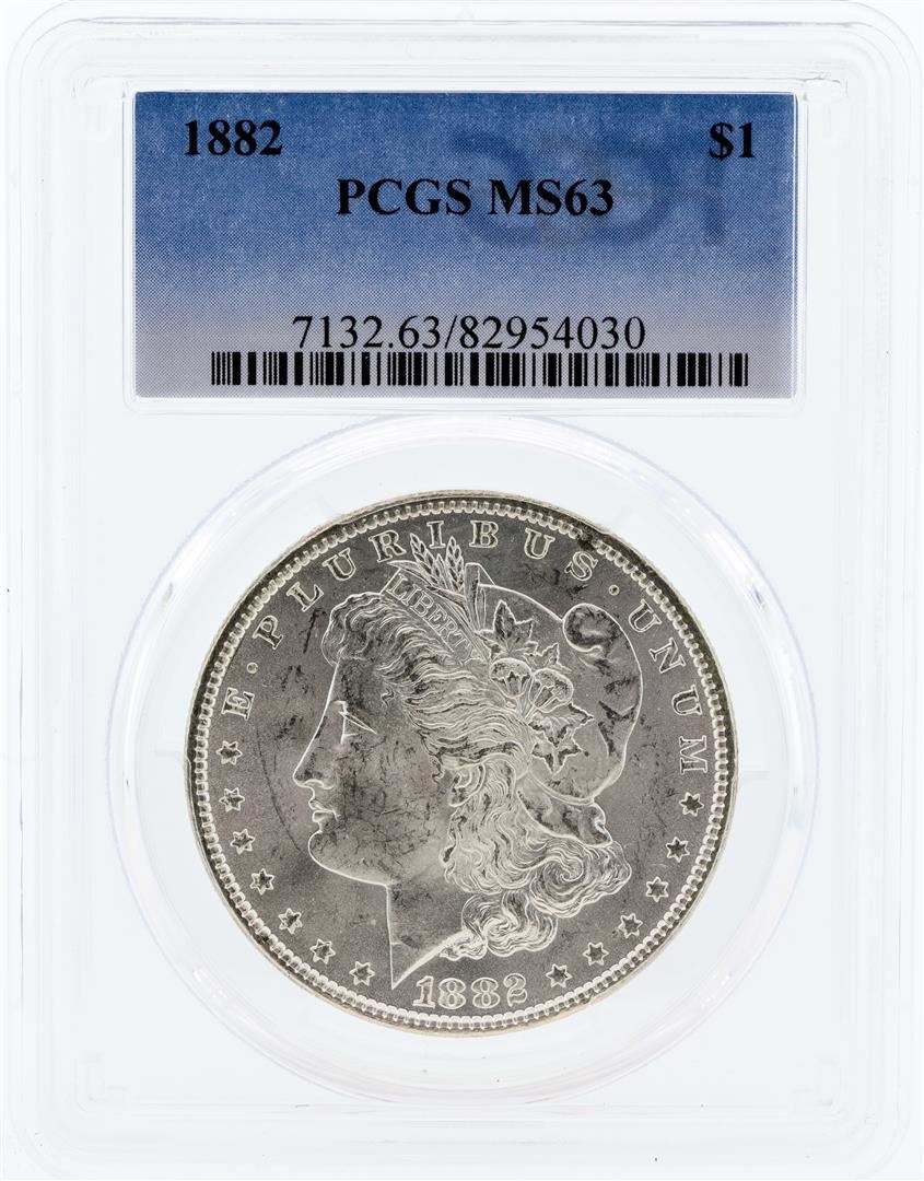 One 1882 PCGS MS63 Morgan Silver Dollar.