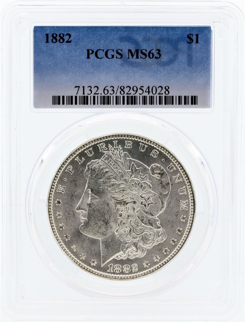 One 1882 PCGS MS63 Morgan Silver Dollar.