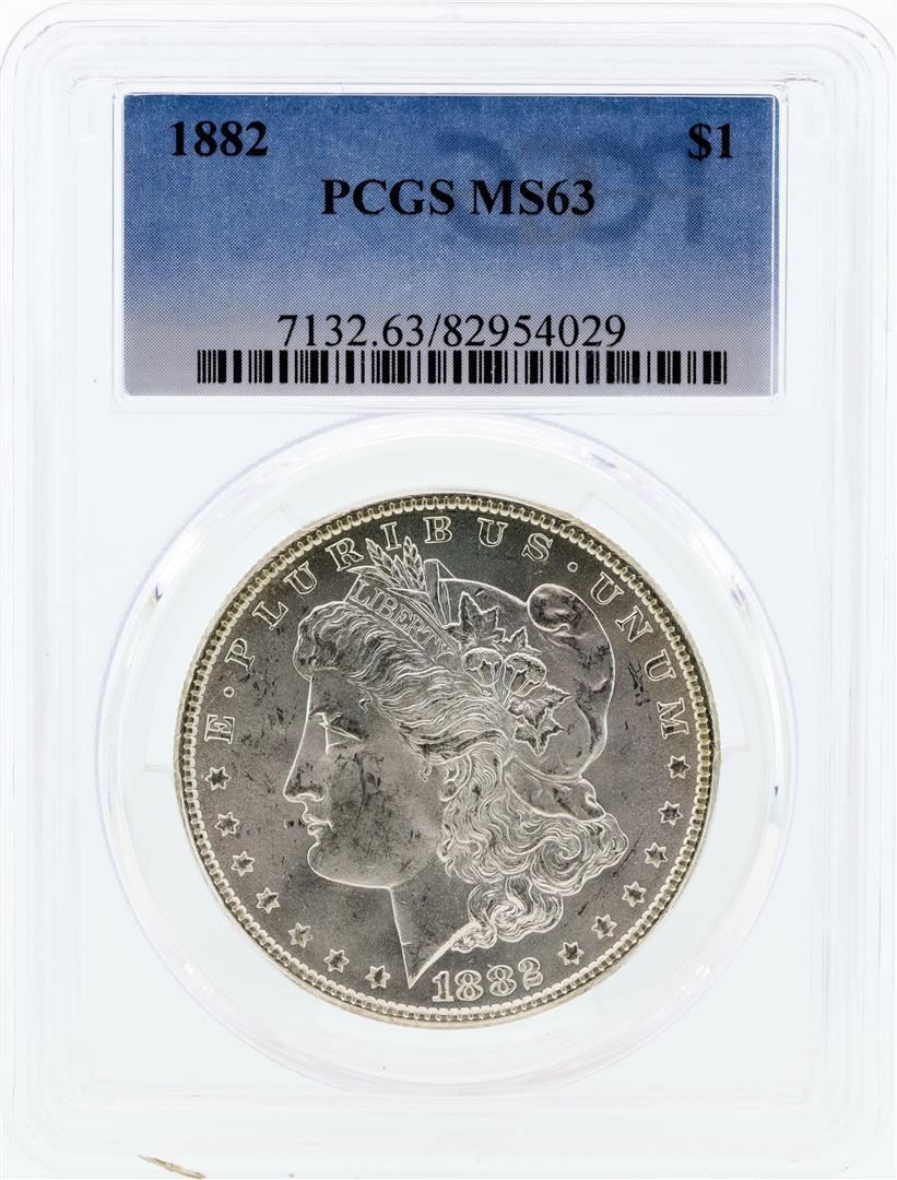 One 1882 PCGS MS63 Morgan Silver Dollar.