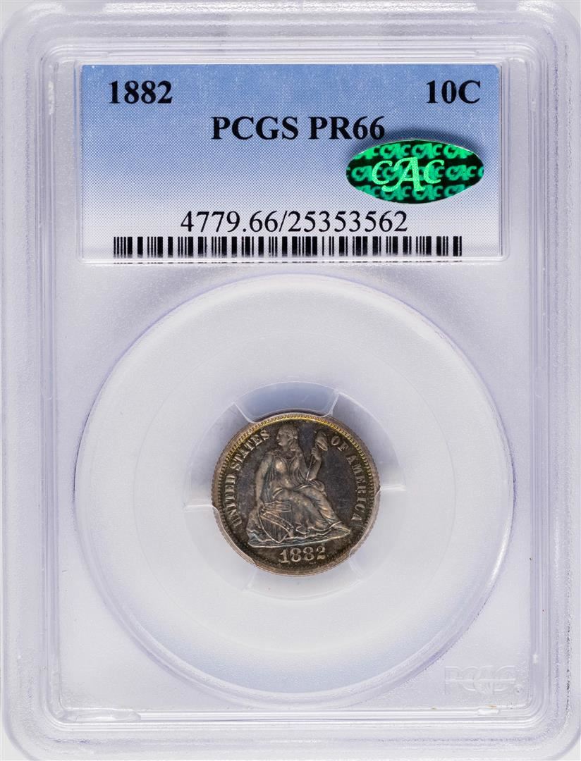 One 1882 Proof Seated Liberty Dime Coin Arrows PCGS PR66 CAC Amazing Toning. PCGS Graded.