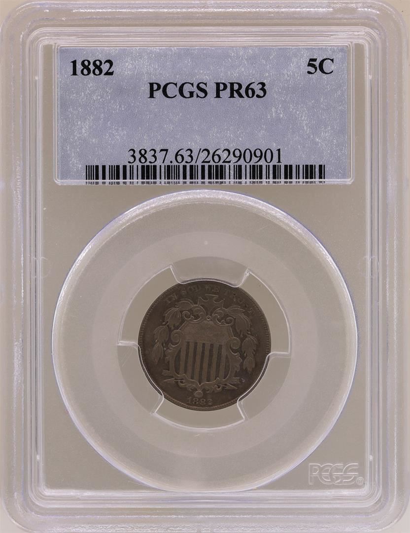 One 1882 Proof Shield Nickel Coin PCGS PR63. PCGS Graded.