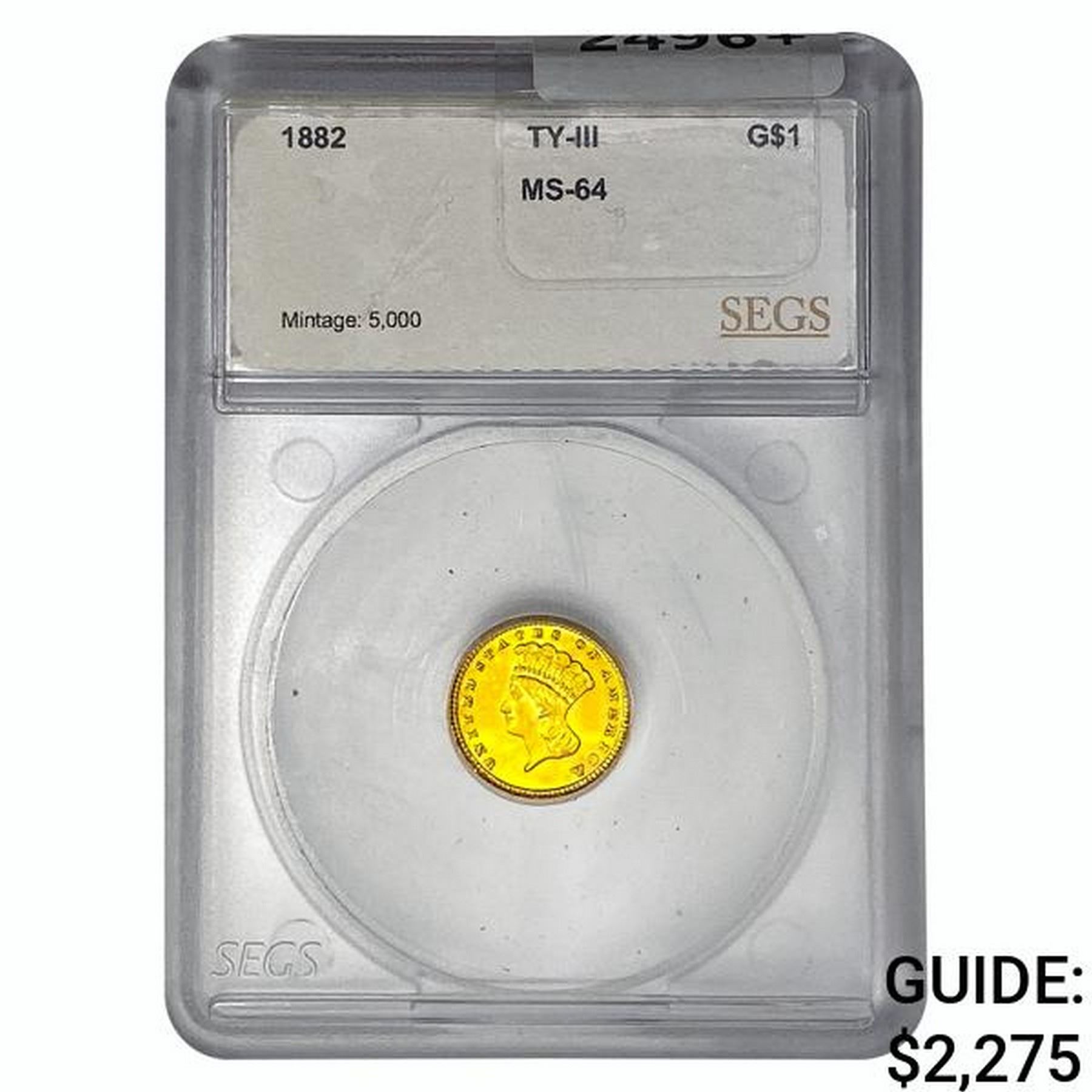 1882 Rare Gold Dollar SEGS MS64 Ty III