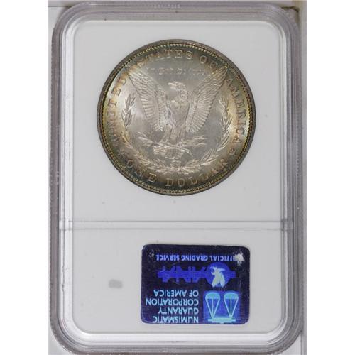 1882 S$1 MS66 NGC. Peach, sky-blue, radish-red, and pl