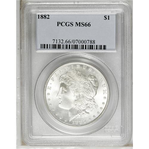 1882 S$1 MS66 PCGS. Solidly struck for this issue with