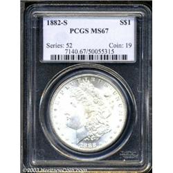 <TABLE cellSpacing=0 cellPadding=0 width="100%" bgColor=#000000 border=0><TBODY><TR><TD width="100%"><TABLE cellSpacing=1 cellPadding=3 width="100%" border=0><TBODY><TR><TD width="100%" bgColor=#79735c><FONT face=arial color=#ffffff size=3><B>Description</B> </FONT></TD></TR><TR><TD width="100%" bgColor=#ffffff><FONT face=arial size=2><B>1882-S $1 MS67 PCGS.</B></I> Fully struck and brilliant, with dazzling cartwheel luster and expertly preserved, minimally marked surfaces. A truly beautiful Superb Gem. </FONT></TD></TR></TBODY></TABLE></TD></TR></TBODY></TABLE><BR><A name=PricesRealized></A><TABLE cellSpacing=0 cellPadding=0 width="100%" bgColor=#000000 border=0><TBODY><TR><TD width="100%"><TABLE cellSpacing=1 cellPadding=3 width="100%" border=0><TBODY><TR><TD width="100%" bgColor=#79735c><A name=PR><FONT face=arial color=#ffffff size=3><B>Previous Prices from Heritage Auctions</B> </FONT></A></TD></TR><TR><TD bgColor=#f6f6ed><TABLE cellSpacing=0 cellPadding=0 width="100%" border=1><TBODY><TR><TD align=middle width="33%"><B>Date</B></TD><TD align=middle width="33%"><B>Service</B></TD><TD align=middle width="33%"><B>Price</B></TD></TR><TR bgColor=whitesmoke><TD width="33%"><B>08/22/2000</B></TD><TD width="33%">NGC</TD><TD width="33%">$560.00</TD></TR><TR bgColor=whitesmoke><TD width="33%"><B>06/06/1997</B></TD><TD width="33%">NGC</TD><TD width="33%">$563.50</TD></TR><TR bgColor=whitesmoke><TD width="33%"><B>05/05/2000</B></TD><TD width="33%">NGC</TD><TD width="33%">$460.00</TD></TR><TR bgColor=whitesmoke><TD width="33%"><B>08/07/1998</B></TD><TD width="33%">NGC</TD><TD width="33%">$460.00</TD></TR><TR bgColor=whitesmoke><TD width="33%"><B>02/24/2001</B></TD><TD width="33%">NGC</TD><TD width="33%">$488.75</TD></TR><TR bgColor=whitesmoke><TD width="33%"><B>09/13/1997</B></TD><TD width="33%">NGC</TD><TD width="33%">$1,150.00</TD></TR><TR bgColor=whitesmoke><TD width="33%"><B>02/02/1996</B></TD><TD width="33%">NGC</TD><TD width="33%">$632.50</TD></TR><TR bgColor=whitesmoke><TD width="33%"><B>03/04/1995</B></TD><TD width="33%">NGC</TD><TD width="33%">$1,100.00</TD></TR><TR bgColor=whitesmoke><TD width="33%"><B>04/25/2000</B></TD><TD width="33%">NGC</TD><TD width="33%">$675.00</TD></TR><TR bgColor=whitesmoke><TD width="33%"><B>02/24/1995</B></TD><TD width="33%">PCGS</TD><TD width="33%">$825.00</TD></TR><TR bgColor=whitesmoke><TD width="33%"><B>06/04/2002</B></TD><TD width="33%">NGC</TD><TD width="33%">$661.25</TD></TR><TR bgColor=whitesmoke><TD width="33%"><B>04/27/2002</B></TD><TD width="33%">NGC</TD><TD width="33%">$621.00</TD></TR><TR bgColor=whitesmoke><TD width="33%"><B>01/22/2002</B></TD><TD width="33%">NGC</TD><TD width="33%">$483.00</TD></TR><TR bgColor=whitesmoke><TD width="33%"><B>01/15/2002</B></TD><TD width="33%">NGC</TD><TD width="33%">$603.75</TD></TR><TR bgColor=whitesmoke><TD width="33%"><B>07/29/2003</B></TD><TD width="33%">PCGS</TD><TD width="33%">$776.25</TD></TR><TR bgColor=whitesmoke><TD width="33%"><B>07/29/2003</B></TD><TD width="33%">PCGS</TD><TD width="33%">$776.25</TD></TR><TR bgColor=whitesmoke><TD width="33%"><B>05/31/2003</B></TD><TD width="33%">PCGS</TD><TD width="33%">$718.75</TD></TR><TR bgColor=whitesmoke><TD width="33%"><B>10/06/2001</B></TD><TD width="33%">PCGS</TD><TD width="33%">$862.50</TD></TR><TR bgColor=whitesmoke><TD width="33%"><B>01/11/2003</B></TD><TD width="33%">PCGS</TD><TD width="33%">$977.50</TD></TR><TR bgColor=whitesmoke><TD width="33%"><B>09/28/2002</B></TD><TD width="33%">PCGS</TD><TD width="33%">$805.00</TD></TR><TR bgColor=whitesmoke><TD width="33%"><B>09/28/2002</B></TD><TD width="33%">PCGS</TD><TD width="33%">$1,035.00</TD></TR><TR bgColor=whitesmoke><TD width="33%"><B>10/12/2000</B></TD><TD width="33%">PCGS</TD><TD width="33%">$564.00</TD></TR><TR bgColor=whitesmoke><TD width="33%"><B>06/08/2002</B></TD><TD width="33%">PCGS</TD><TD width="33%">$747.50</TD></TR><TR bgColor=whitesmoke><TD width="33%"><B>04/27/2002</B></TD><TD width="33%">PCGS</TD><TD width="33%">$977.50</TD></TR><TR bgColor=whitesmoke><TD width="33%"><B>04/27/2002</B></TD><TD width="33%">PCGS</TD><TD width="33%">$1,265.00</TD></TR><TR bgColor=whitesmoke><TD width="33%"><B>02/23/2002</B></TD><TD width="33%">PCGS</TD><TD width="33%">$977.50</TD></TR><TR bgColor=whitesmoke><TD width="33%"><B>01/12/2002</B></TD><TD width="33%">PCGS</TD><TD width="33%">$833.75</TD></TR><TR bgColor=whitesmoke><TD width="33%"><B>12/04/2001</B></TD><TD width="33%">PCGS</TD><TD width="33%">$725.00</TD></TR><TR bgColor=whitesmoke><TD width="33%"><B>11/27/2001</B></TD><TD width="33%">PCGS</TD><TD width="33%">$650.00</TD></TR><TR bgColor=whitesmoke><TD width="33%"><B>08/05/2000</B></TD><TD width="33%">PCGS</TD><TD width="33%">$1,150.00</TD></TR><TR bgColor=whitesmoke><TD width="33%"><B>09/13/1997</B></TD><TD width="33%">PCGS</TD><TD width="33%">$546.25</TD></TR><TR bgColor=whitesmoke><TD width="33%"><B>08/13/1999</B></TD><TD width="33%">PCGS</TD><TD width="33%">$1,840.00</TD></TR><TR bgColor=whitesmoke><TD width="33%"><B>08/07/1999</B></TD><TD width="33%">PCGS</TD><TD width="33%">$718.75</TD></TR><TR bgColor=whitesmoke><TD width="33%"><B>06/01/1996</B></TD><TD width="33%">PCGS</TD><TD width="33%">$797.50</TD></TR><TR bgColor=whitesmoke><TD width="33%"><B>09/21/1996</B></TD><TD width="33%">PCGS</TD><TD width="33%">$786.50</TD></TR><TR bgColor=whitesmoke><TD width="33%"><B>02/05/1994</B></TD><TD width="33%">PCGS</TD><TD width="33%">$880.00</TD></TR><TR bgColor=whitesmoke><TD width="33%"><B>05/01/2001</B></TD><TD width="33%">PCGS</TD><TD width="33%">$625.00</TD></TR><TR bgColor=whitesmoke><TD width="33%"><B>02/23/2001</B></TD><TD width="33%">PCGS</TD><TD width="33%">$517.50</TD></TR><TR bgColor=whitesmoke><TD width="33%"><B>09/05/2000</B></TD><TD width="33%">PCGS</TD><TD width="33%">$725.00</TD></TR><TR bgColor=whitesmoke><TD width="33%"><B>11/17/2000</B></TD><TD width="33%">PCGS</TD><TD width="33%">$690.00</TD></TR><TR bgColor=whitesmoke><TD width="33%"><B>06/01/1996</B></TD><TD width="33%">PCGS</TD><T