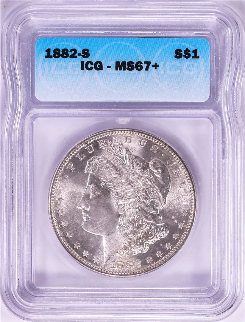 One 1882-S $1 Morgan Silver Dollar Coin ICG MS67+. ICG Certified.