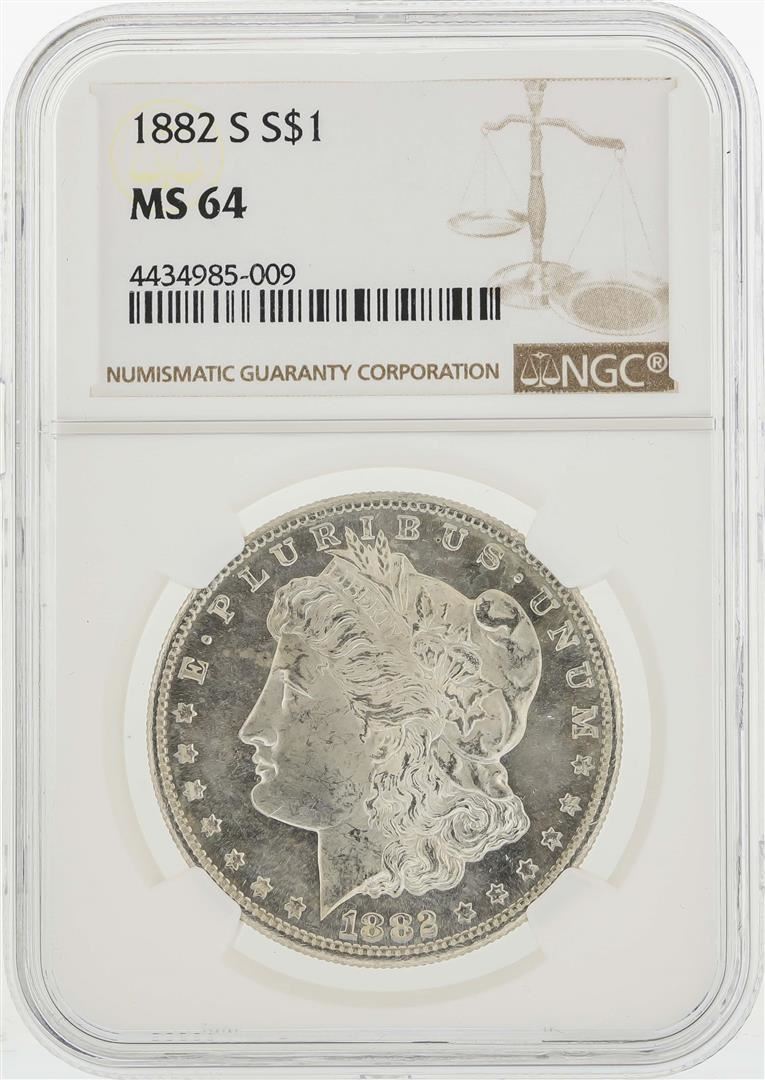 One 1882-S $1 Morgan Silver Dollar Coin NGC MS64. NGC Certified.