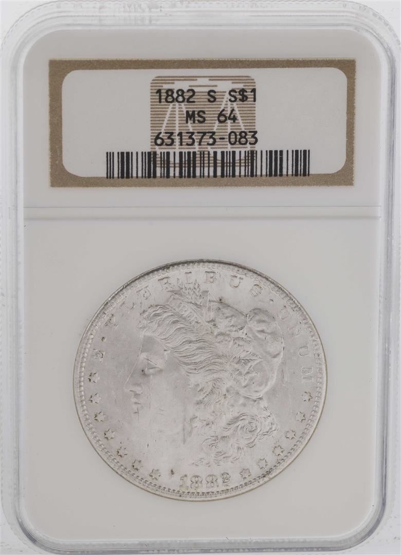 One 1882-S $1 Morgan Silver Dollar Coin NGC MS64. NGC Certified.