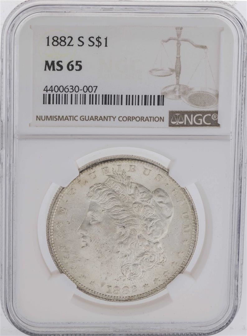 One 1882-S $1 Morgan Silver Dollar Coin NGC MS65. NGC Certified.