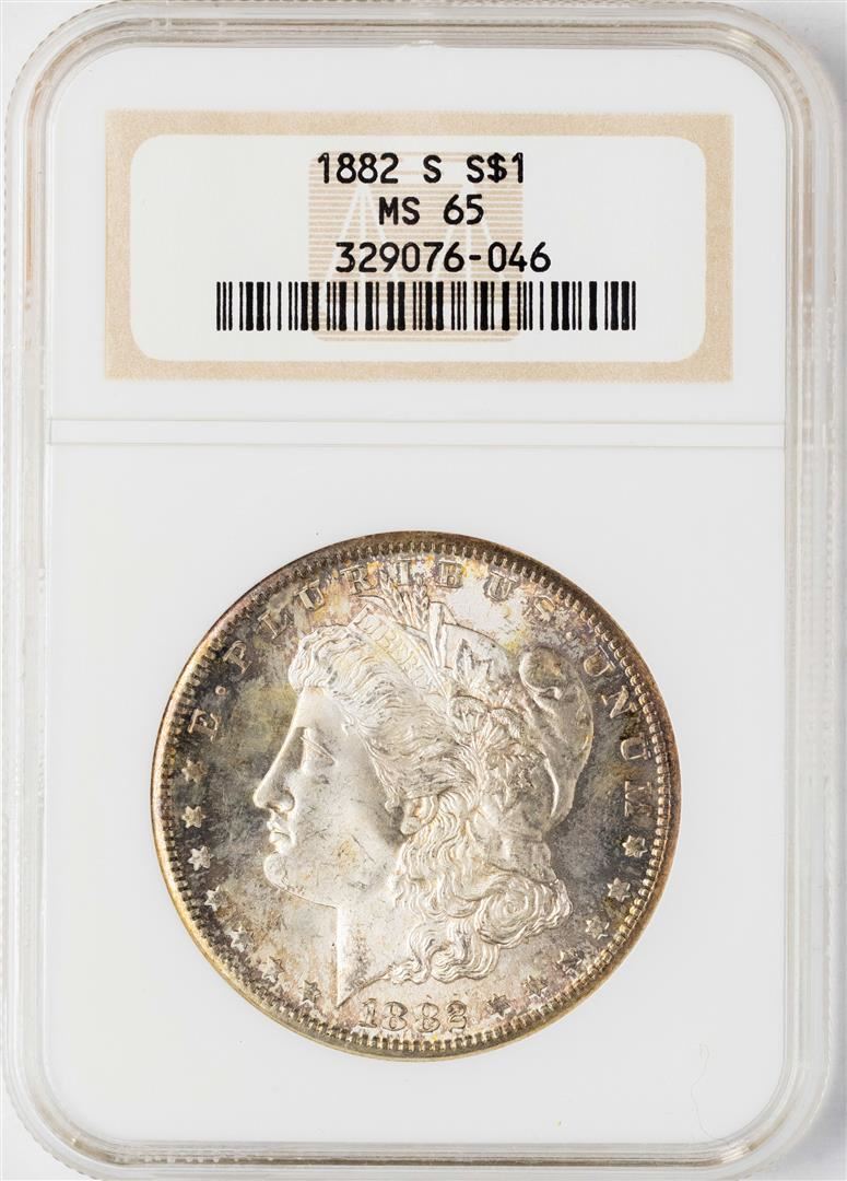 One 1882-S $1 Morgan Silver Dollar Coin NGC MS65. NGC Certified.