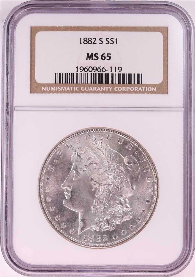One 1882-S $1 Morgan Silver Dollar Coin NGC MS65. NGC Certified.