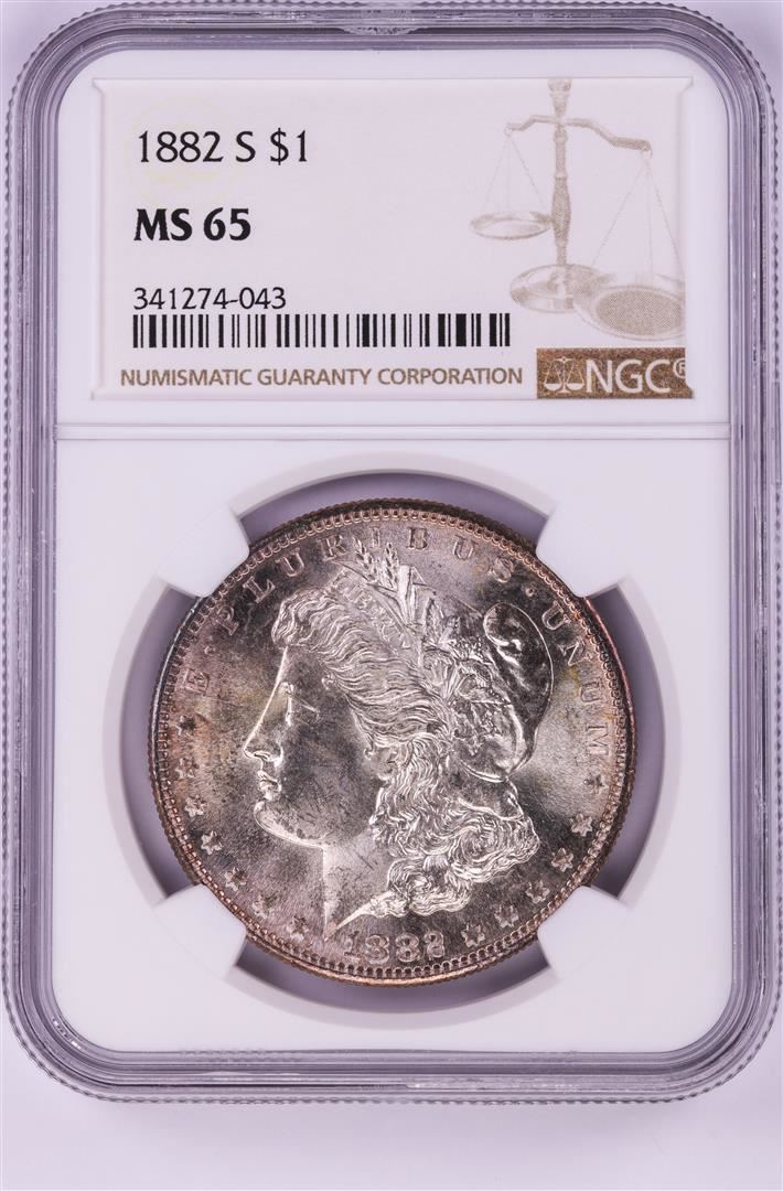 One 1882-S $1 Morgan Silver Dollar Coin NGC MS65. NGC Certified.