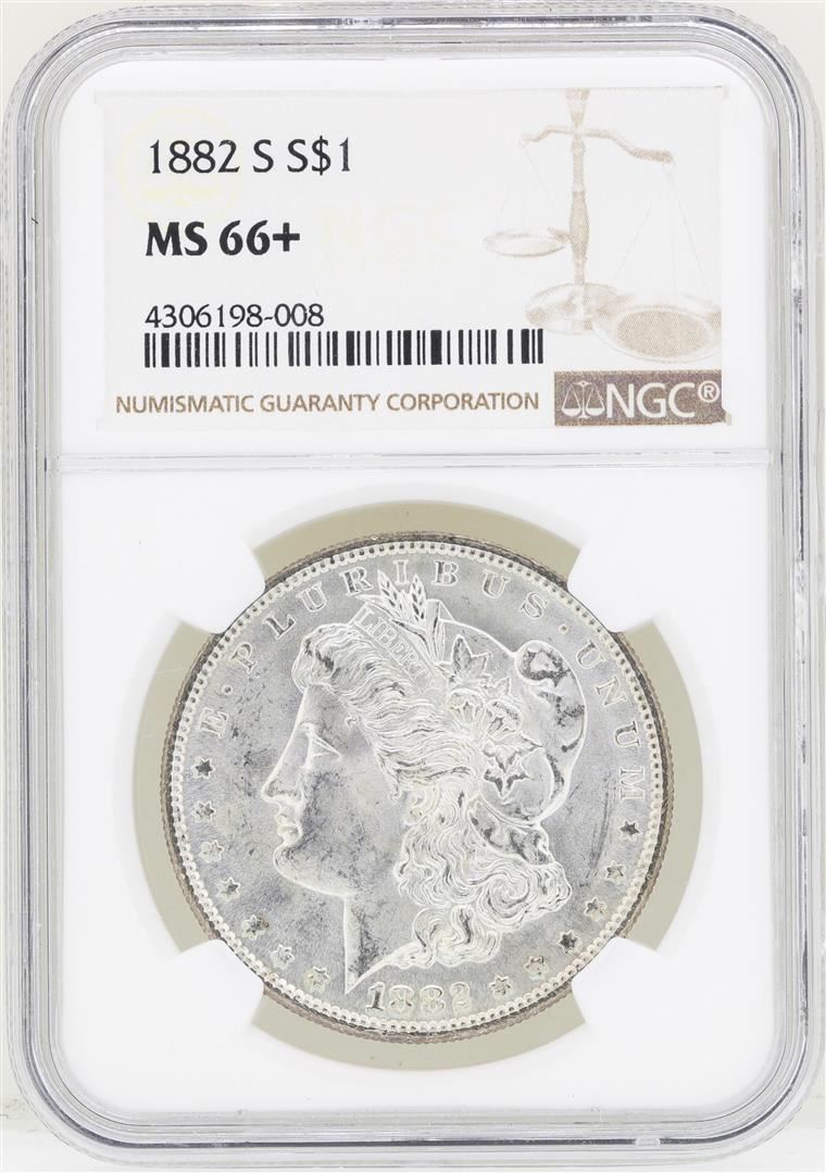 One 1882-S $1 Morgan Silver Dollar Coin NGC MS66+. NGC Certified.