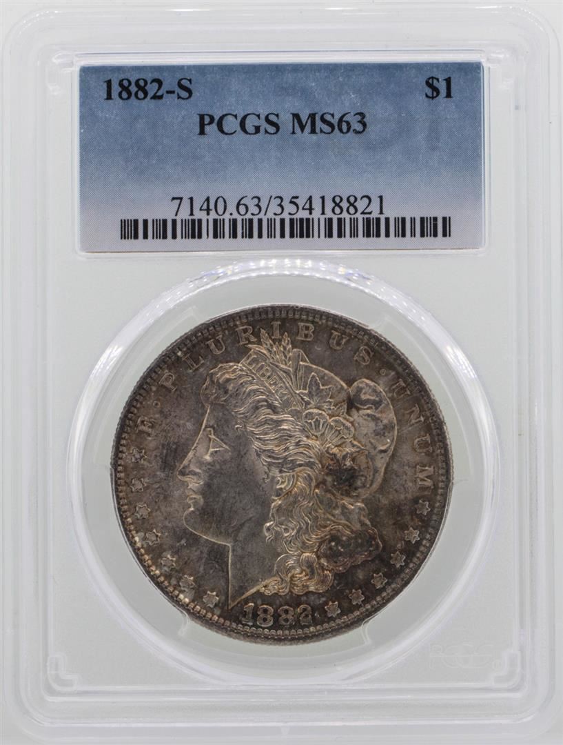 One 1882-S $1 Morgan Silver Dollar Coin PCGS MS63 NICE TONING. PCGS Graded.
