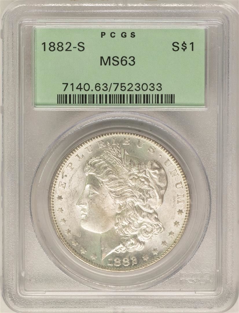 1882-S $1 Morgan Silver Dollar Coin PCGS MS63 Old Green Holder