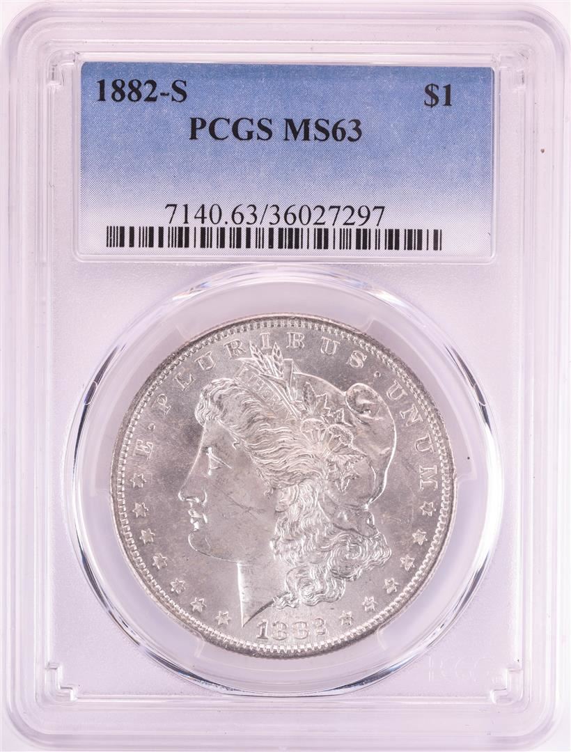 One 1882-S $1 Morgan Silver Dollar Coin PCGS MS63. PCGS Graded.