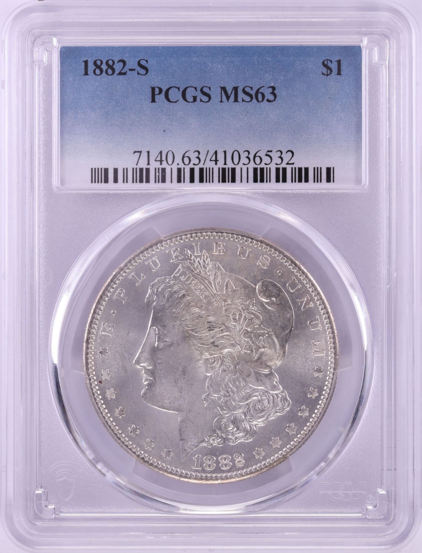 One 1882-S $1 Morgan Silver Dollar Coin PCGS MS63.