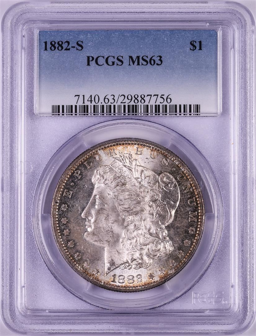 One 1882-S $1 Morgan Silver Dollar Coin PCGS MS63. PCGS Graded.