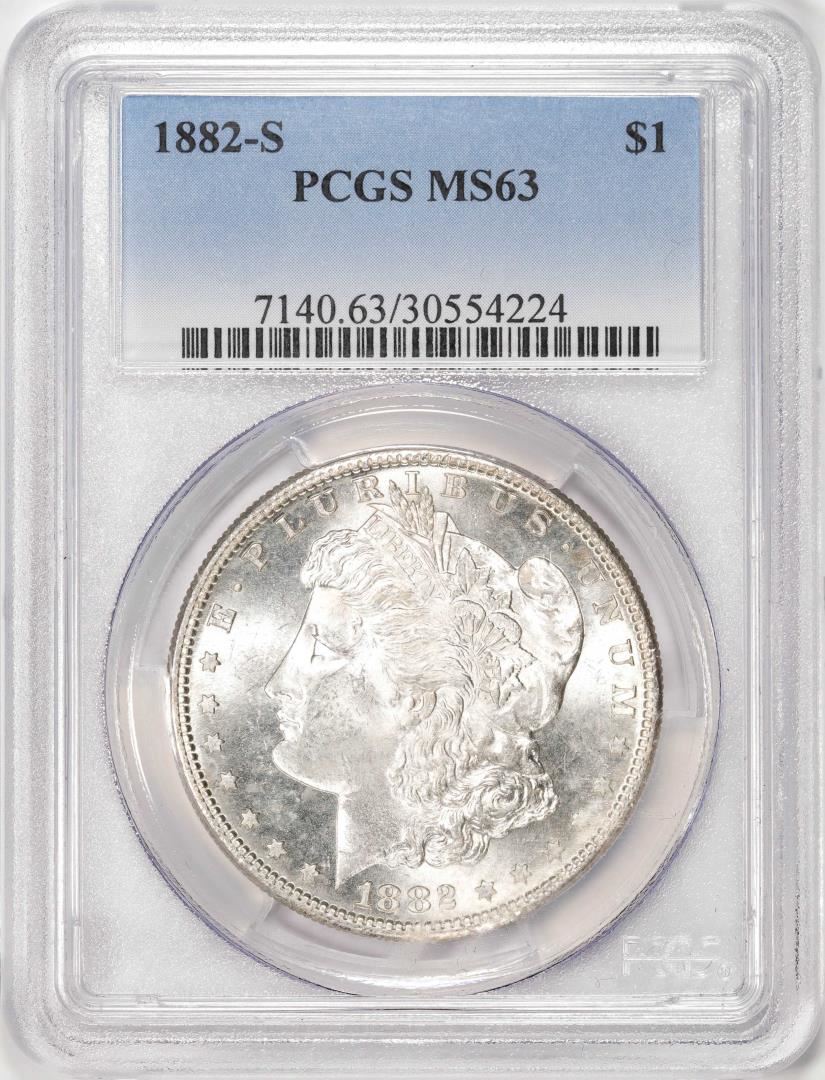 One 1882-S $1 Morgan Silver Dollar Coin PCGS MS63. PCGS Graded.