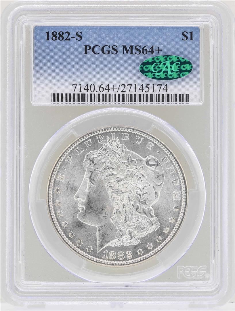 One 1882-S $1 Morgan Silver Dollar Coin PCGS MS64+ CAC. PCGS Graded.