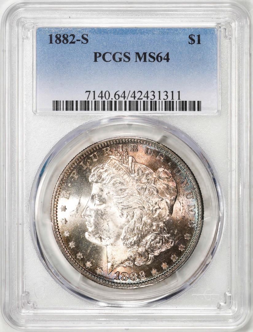 One 1882-S $1 Morgan Silver Dollar Coin PCGS MS64 Great Toning. PCGS Graded.