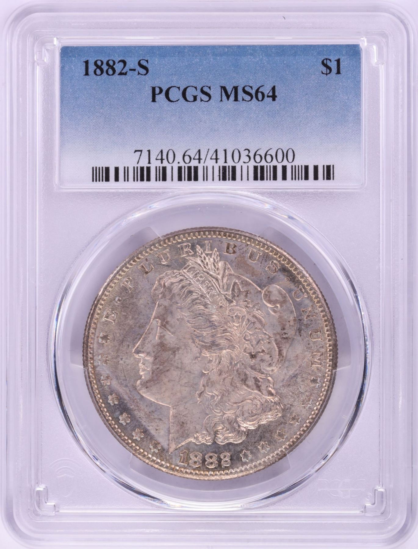 One 1882-S $1 Morgan Silver Dollar Coin PCGS MS64 Nice Toning.