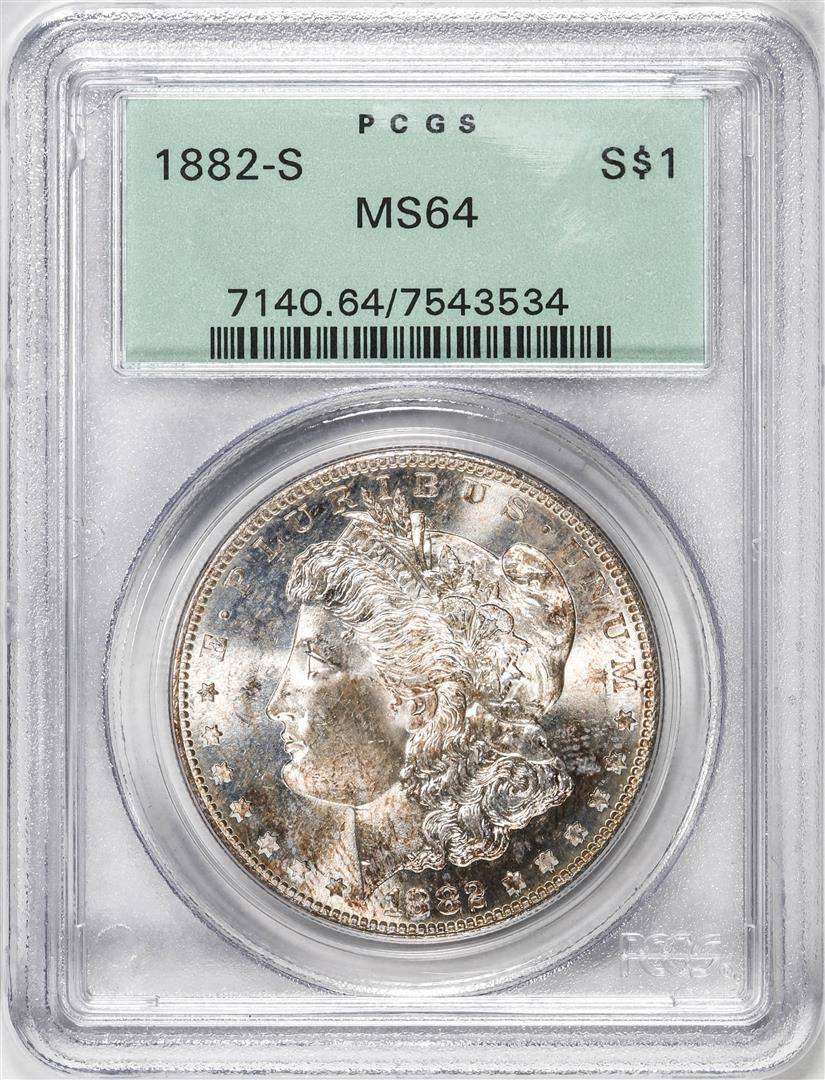 One 1882-S $1 Morgan Silver Dollar Coin PCGS MS64 Old Green Holder. PCGS Graded.