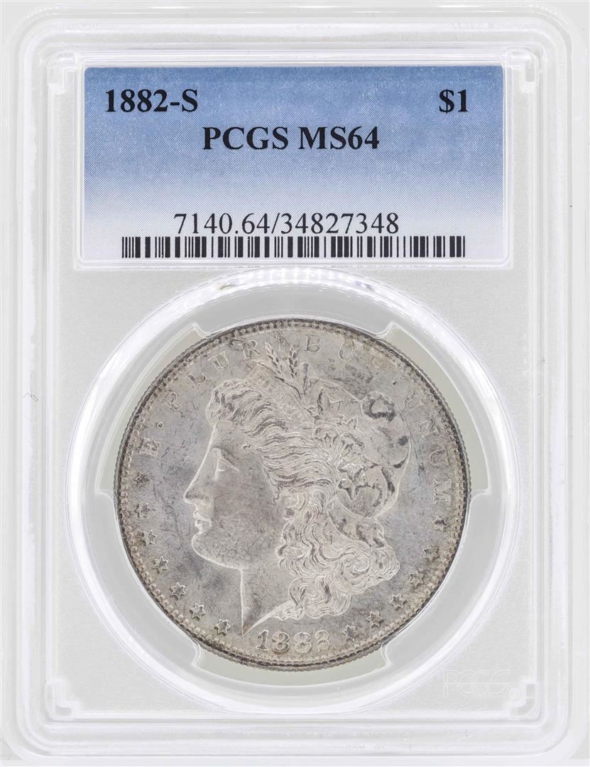 One 1882-S $1 Morgan Silver Dollar Coin PCGS MS64. PCGS Graded.