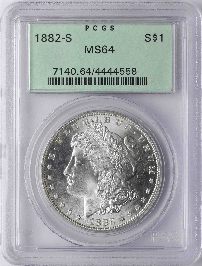 One 1882-S $1 Morgan Silver Dollar Coin PCGS MS64. PCGS Graded.