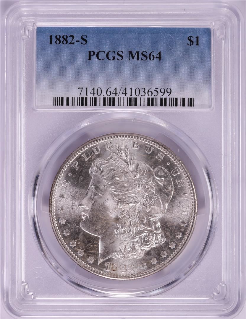 One 1882-S $1 Morgan Silver Dollar Coin PCGS MS64. PCGS Graded.