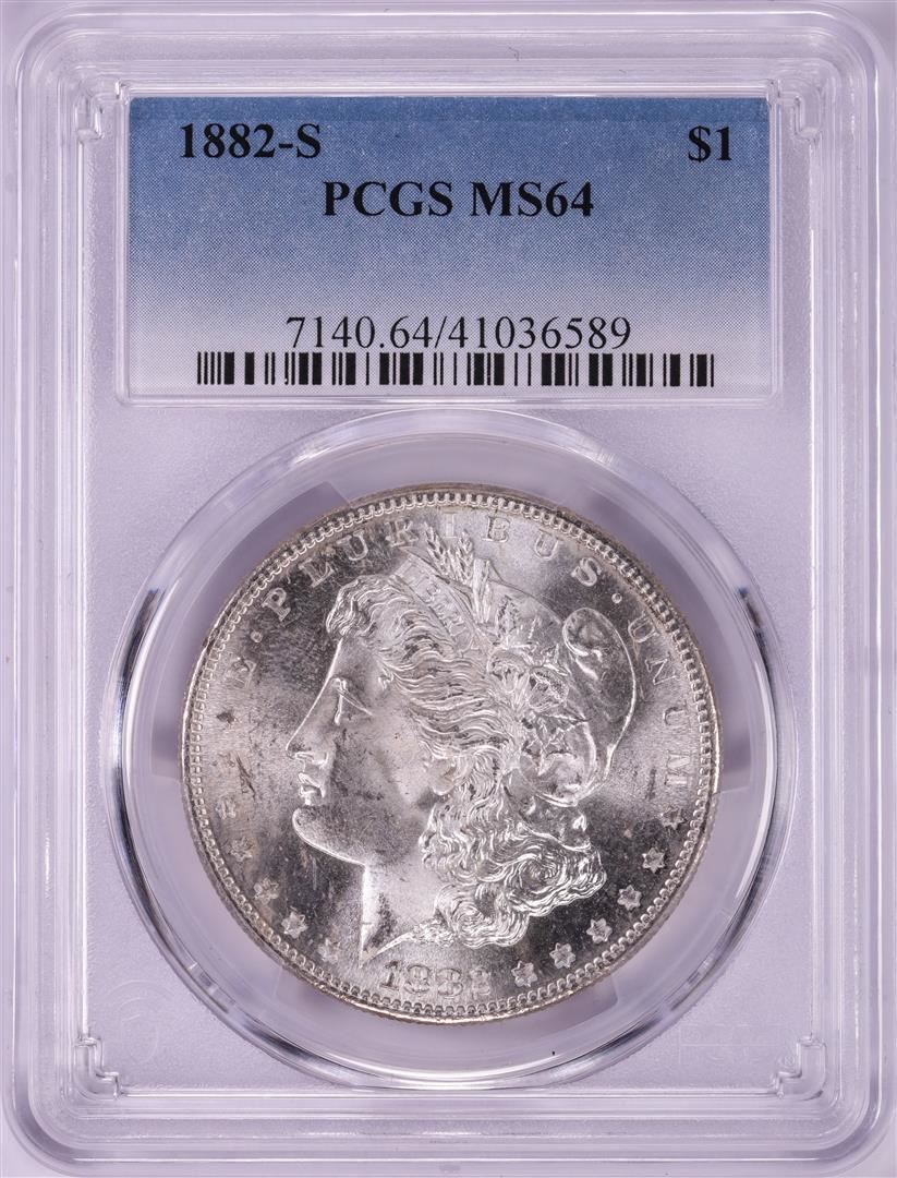 One 1882-S $1 Morgan Silver Dollar Coin PCGS MS64. PCGS Graded.
