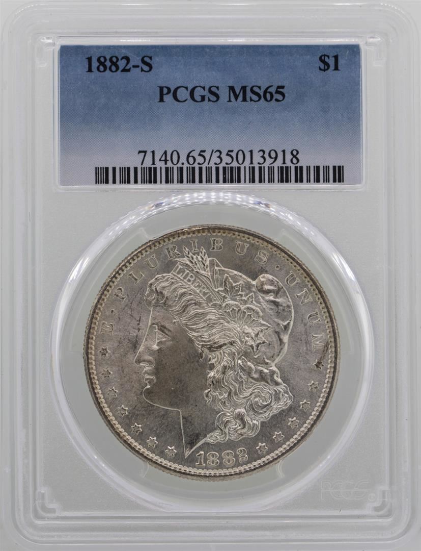 One 1882-S $1 Morgan Silver Dollar Coin PCGS MS65 AMAZING Toning. PCGS Graded.