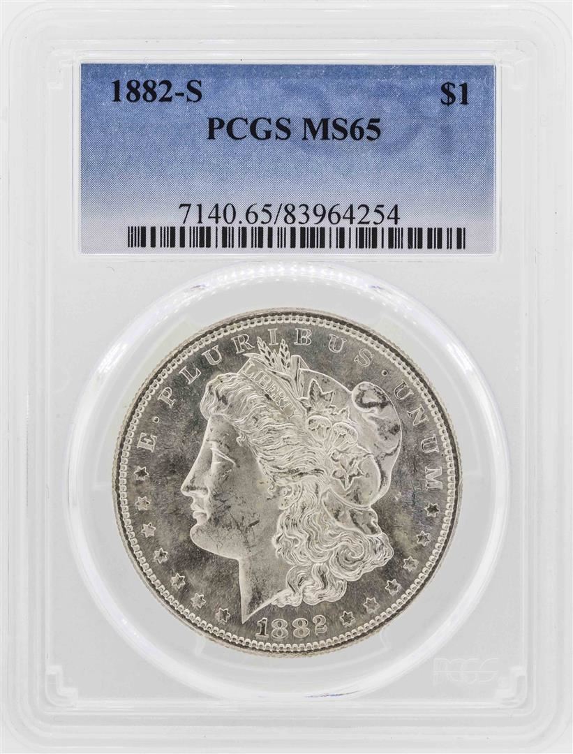 One 1882-S $1 Morgan Silver Dollar Coin PCGS MS65. PCGS Graded.