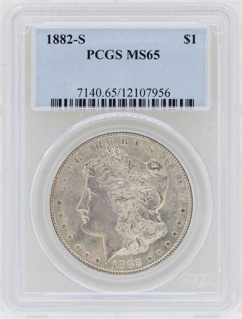 One 1882-S $1 Morgan Silver Dollar Coin PCGS MS65. PCGS Graded.