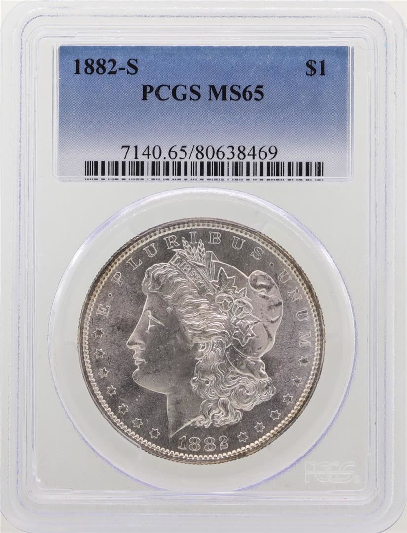 One 1882-S $1 Morgan Silver Dollar Coin PCGS MS65. PCGS Graded.