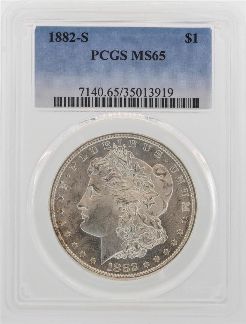 One 1882-S $1 Morgan Silver Dollar Coin PCGS MS65. PCGS Certified.