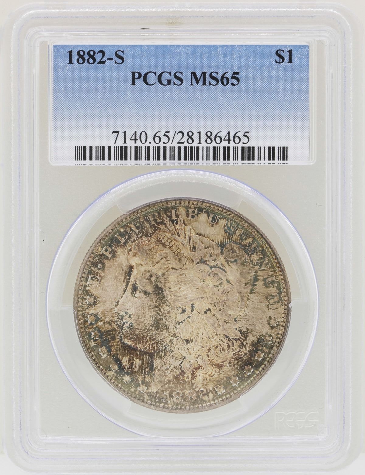 One 1882-S $1 Morgan Silver Dollar Coin PCGS MS65.