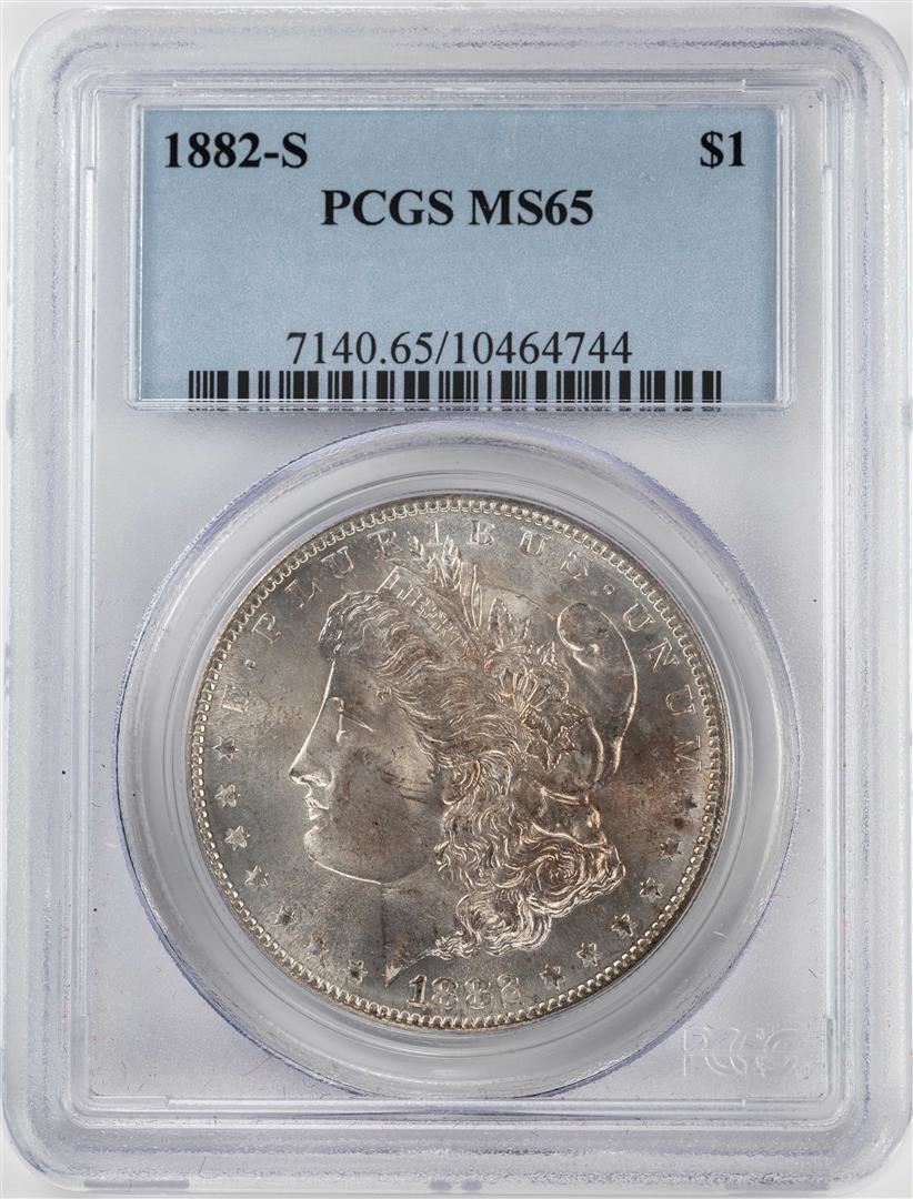 One 1882-S $1 Morgan Silver Dollar Coin PCGS MS65. PCGS Graded.