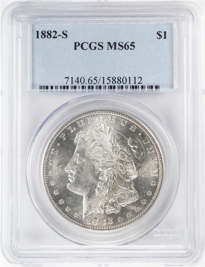 One 1882-S $1 Morgan Silver Dollar Coin PCGS MS65. PCGS Graded.