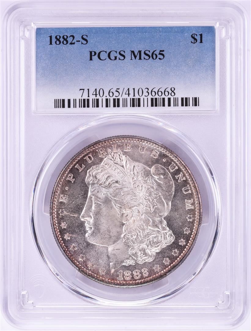 One 1882-S $1 Morgan Silver Dollar Coin PCGS MS65. PCGS Graded.