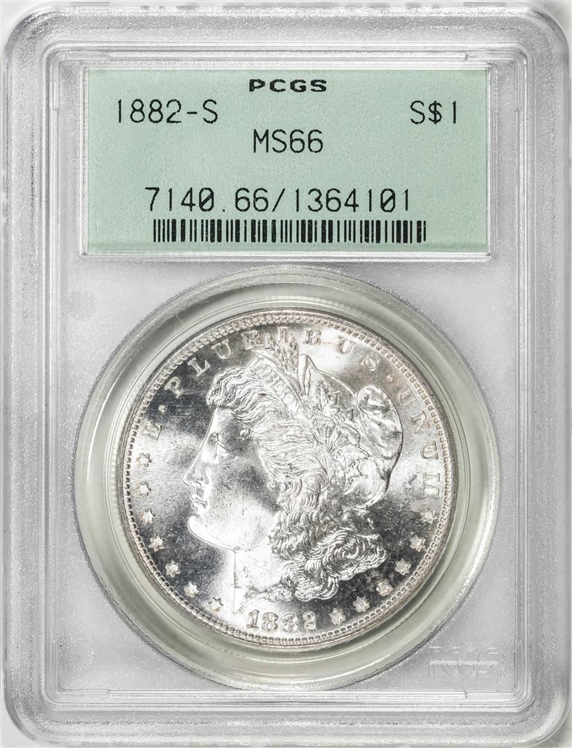 1882-S $1 Morgan Silver Dollar Coin PCGS MS66 Old Green Holder