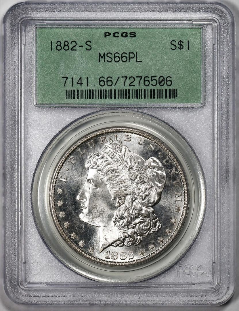 1882-S $1 Morgan Silver Dollar Coin PCGS MS66PL Old Green Holder