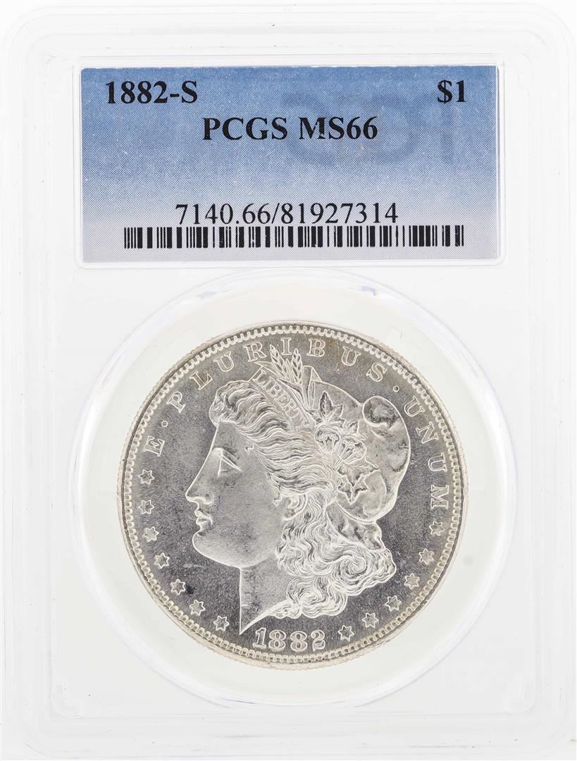 One 1882-S $1 Morgan Silver Dollar Coin PCGS MS66. PCGS Graded.