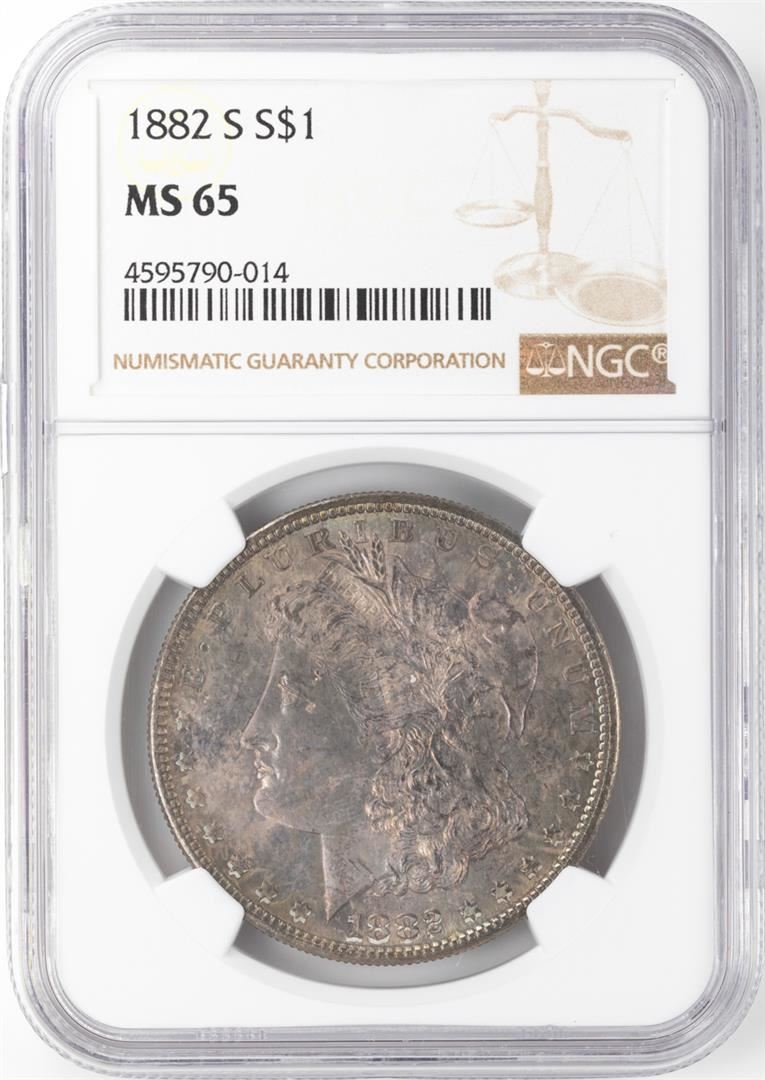 One 1882-S $1 Morgan Silver Dollar NGC MS65 Nice Toning. NGC Certified.
