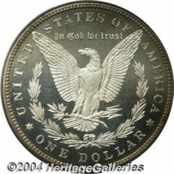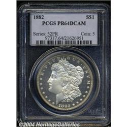 <B>1882<S$1> PR64 Deep Cameo PCGS.</B></I> The frosty design features seem to float over the deeply mirrored, watery fields of this superlative Morgan dollar. Only a faint hint of color occurs on the nearly blemish-free surfaces. This coin possesses fewer marks than might be expected for a piece in this grade. Formerly as lot 1370 in the Bowers and Ruddy Galleries sale of The Julius Turoff Collection, sold on October 2, 1976, and described in that auction as "<B>Gem Brilliant Proof.</B></I> No finer quality silver dollar of this date could exist."<BR><I>From The Willamette Collection.</B></I> <BR><BR><B>Important notice:</B> Heritage usually auctions material at the rate of 200-250 lots per hour. On some occasions eBay Live bid software or the Internet may not be able to keep up with the pace of the auction. We recommend placing a realistic absentee bid now as insurance to avoid disappointment. Occasionally the auctioneer may eliminate or reject an eBay Live bid, and the auctioneer may also reopen a lot after the close of the eBay live bidding (usually because we missed an audience bid), and may reject your bid even if it shows you as the winning bidder. By bidding via eBay Live, you agree that Heritage may award the lot to another bidder at its sole discretion under the circumstances described above or any other reasonable circumstances. Since eBay bids are not shown to us until we open the lot on the floor, we treat those bids just like floor bids. In most cases the floor responds before the eBay bid is presented to us, due to Internet lag time, so for consistency we have made it a policy that floor bids are always considered first over tie eBay live bids. Also please note that all Heritage lots purchased through eBay Live carry a 20% Buyer's Premium. Please make sure you read the Terms and Conditions before you bid. </span></font></tr></table></td></tr></table>