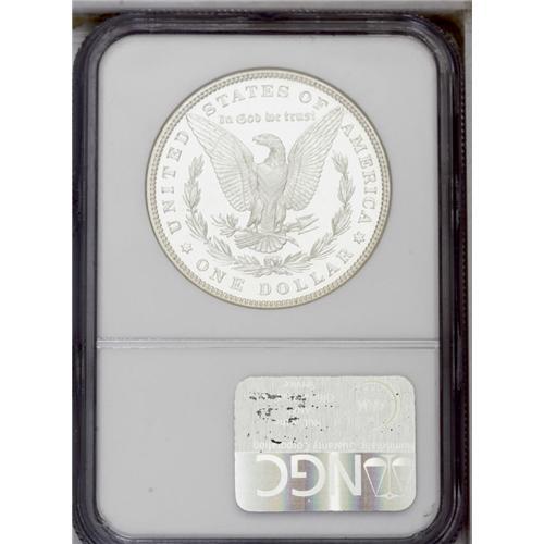 <B>1882<img border='0' src='http://www.heritagecoins.com/images/star.gif' width=10 height=10>$1> PR68 Cameo NGC.</B></I> In 1882, the Philadelphia Mint produced some 1,100 proof Morgan dollars for sale to collectors, either individually or in combination with other denominations. Highly desirable with fully brilliant silver surfaces on both sides, exhibiting exceptional cameo contrast between the lustrous devices and mirrored fields. The grade awarded by NGC is a result of pristine surfaces and a virtually complete lack of contact marks and hairlines. Each side has extraordinary design definition. Every individual hair strand on the obverse is completely defined, even including those immediately above the ear. Wheat, corn, cotton bolls, and tobacco leaves above the coronet are all in full bloom. The reverse is equally well detailed with all wing, breast, and neck feathers individually developed. The eagle's claws, tail feathers, and the wreath below are fully defined as well.<BR> This amazing example defies the words of Dave Bowers in the <I>Morgan Dollar Red Book:</B></I> "Another good vintage year for Proofs--what with excellent strike and deep cameo contrast being the rule. Still, the majority have been cleaned--and those deep mirror fields make hairlines pop out at you." This is an elusive issue, and the present example is equaled by only one other example in all of our auctions since 1993 and the beginning of our Permanent Auction Archives. It may be appropriate to mention that these archives, available to all who have internet access, now have more than 1 million numismatic items listed and offered by us during the last 14 years, for an average of more than 70,000 items per year.