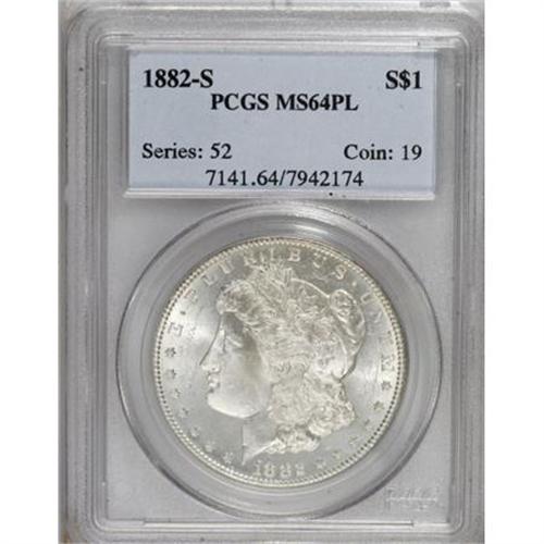 <B>1882-S $1 MS64 Prooflike PCGS.</B></I> PCGS Population (841/482). NGC Census: (955/778). Numismedia Wsl. Price for NGC/PCGS coin in MS64: $100. (#7141)<BR><BR><B>Coin Engraver:</B> George T. Morgan<BR><BR><b>Shipping:</b> Coins & Currency (<a target="_blank" href="http://www.heritageauctions.com/common/shipping.php">view shipping information</a>)