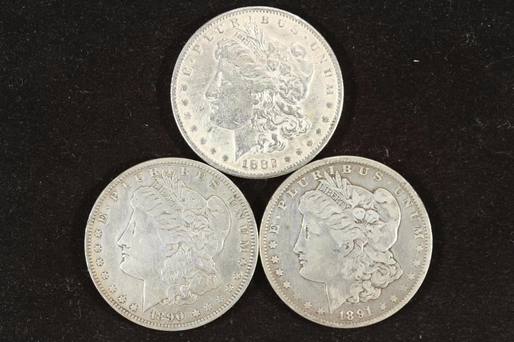 1882-S, 1890-O & 1891-O MORGAN SILVER DOLLARS