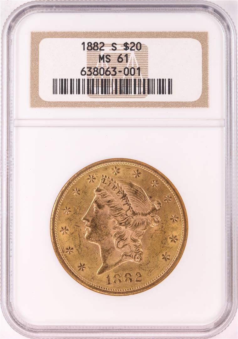 One 1882-S $20 Liberty Head Double Eagle Gold Coin NGC MS61. NGC Certified.